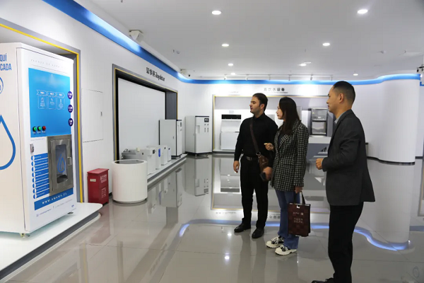 在現場,國際貿易負責人向客戶闡述了公司在新質生產力發展趨勢下,運用“物聯網+社區服務終端”的理念,推出智能凈水工廠、自助售水機等新型社區終端服務項目,旨在實現智能化社區管理。客戶對此創新且可持續的高質量發展模式表示贊賞。
